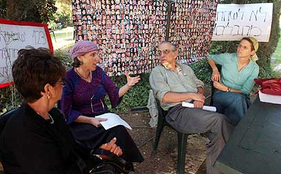 על רקע האמירות של גורמים צבאיים כי החייל החטוף רב"ט גלעד שליט בחיים והאפשרות שישראל תשחרר אסירים פלסטינים תמורתו, קיימו אחר הצהריים (יום ה') מספר משפחות שיקיריהן נפגעו בפעולות טרור ישיבת חירום מול משרדו של ראש הממשלה אהוד אולמרט, בדרישה שלא להסכים ל"החלפת שבויים". הישיבה התקיימה במאהל מחאה המילואימניקים.