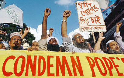 האפיפיור עורר עליו את חמתם של המוסלמים כאשר בנאום שנשא בשבוע שעבר ציטט את דברי הקיסר הביזנטי מנואל פלאיולוגוס השני, מהמאה ה-14, שאמר: "תראו לי משהו חדש שמוחמד הביא, ושם תמצאו רק דברים לא-אנושיים ומרושעים, כמו ההוראה שלו להפיץ את אמונתו דרך החרב".