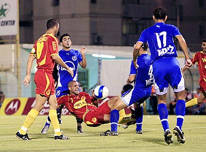זאב חיימוביץ' (מימין) לוחץ את כריסטיאן גונזאלס האשדודי (צפריר אביוב)