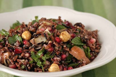 מנה עונתית. שני סוגי אורז עם חבושים ורימונים (צילום: אסף רונן)