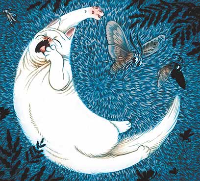 חתול-ירח מחבר יקיצה לחלום על קציצה (איור: דוד פולונסקי)