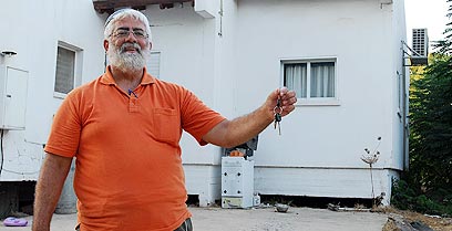 איציק כהן ומה שנשאר מהמכונית (צילום: אמיר כהן)