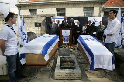 ארונותיהם של שני ילדיו של חוזה המדינה, בנימין זאב הרצל, הוצאו היום (ג') מבית הקברות היהודי העתיק בעיר בורדו שבצרפת, בדרכן לישראל, שם יקברו לצידו של אביהם.