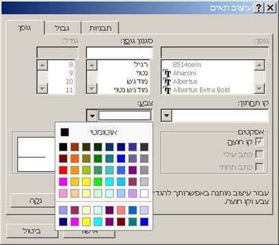 כעת עלינו להגיד ל-Excel מה לעשות כאשר התנאי מתקיים. אנחנו רוצים שתא שמקיים את התנאי ייצבע בירוק, לכן נקליק על הכפתור תבנית. בחלון שיוצג (עיצוב תאים) נבחר לצבוע את תוכן התא בירוק (נצלו את ההזדמנות ושימו לב לאפשרויות העיצוב האחרות).