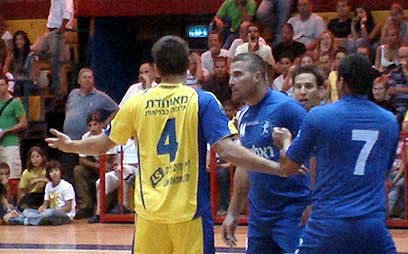 במהלך גמר גביע איגוד השופטים, החלו יון רושקה ממכבי ודימה ינדוביצקי מהפועל להחליף מהלומות. השחקנים והצוות המקצועי לא נותרו חייבים ובמקום התפתחה תגרה. בסיום, אגב, ניצחה הפועל 19:33. גלעד מאור: "הפועל הרביצו ללא הפסקה". קובי מימון: "הפרובוקציה היתה של מכבי"