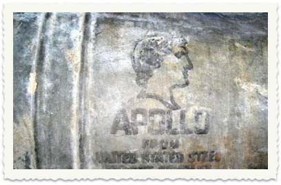 הקרדיט על החשיפה הראשונה של הפסיפס מגיע למשפך מים מהמאה ה-19, תוצרת חברת "אפולו" ניו-יורק. המשפך ניתן לאבשלום כמתנה, מאחד מעובדי מפעל "שטיין" ביפו שפעל בארץ עוד לפני מלחמת העולם הראשונה, ושימש אותו לעבודות החפירה. בתצלום למעלה: הסמל שעל המשפך.