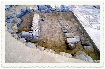 מחקר העלה שבמקום, מתחת לשרידי בית קברות בדואי שהוקמו על חורבותיו של כפר ערבי קדום, שוכן יישוב יהודי מהמאה השלישית לספירה. בית הכנסת, שהוקם בשלהי מאה זו, שימש את הקהילה היהודית במקום יותר מ-300 שנה וחרב, יחד עם שאר מבני היישוב, בשריפה גדולה שפרצה בעת הכיבוש הערבי. בתמונה: האפסיס של ביה"כ, בו היה ארון קודש, וסמוך לו נמצאה הגניזה.