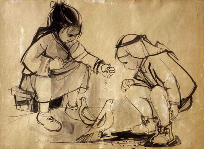 לפני שנה, זמן קצר אחרי שנכנסה לתפקידה החדש כאוצרת ראשית במוזיאון נחום גוטמן, מצאה טלי תמיר אוצר קטן. בחדר צדדי בבניין המוזיאון בנווה צדק היא גילתה מספר גליונות גדולים מגולגלים בערבובייה. כשפתחה אותם מצאה את ציורי המתווים שהכין גוטמן לעבודת המוזאיקה של המזרקה ברחוב ביאליק. הציורים האלה נשלחו, עם הוראות כתובות באיטלקית, להכנה באיטליה ואחרי שחזרו נשכחו מלב. יש בהם הכל: מבט-על אל פינת אלנבי-בן יהודה עם קולנוע מוגרבי המיתולוגי, מולו יושבי בית קפה, אחד קורא עיתון, השנייה כותבת, עגלת מוכר הנקניקיות (ייבוא מרכז אירופאי מובהק) וילדי הגן עם הגננת במטפחת הלבנה חולפים על פני אדון ביאליק. דמותו של המשורר הלאומי צוירה על דף קטן והודבקה אל המתווה וגם אם הוא מצויר מאחור, אין ספק שאליו התכוון הצייר.