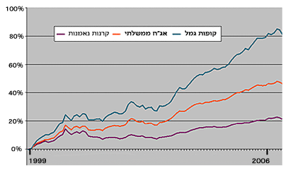 תשואות קופות הגמל, הקרנות ואג"ח ממשלתי משנת 1999 ועד יולי 2006. מתוך אתר משרד האוצר