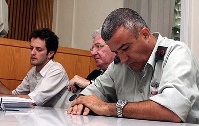 הבוקר בבית הדין הצבאי עם אשתו נדיה (צילום: עופר עמרם)