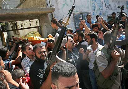 חמושים בעזה, במהלך הלווית אחד מאנשי החמאס שנהרג (צילום: איי.פי)