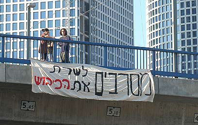 שלטים מעל איילון: לא נתגייס לצבא האפרטהייד