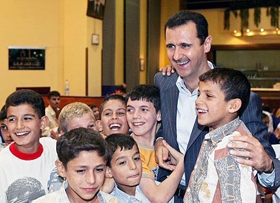 אסד ותומכים סורים צעירים, בסוף השבוע (צילום: רויטרס)
