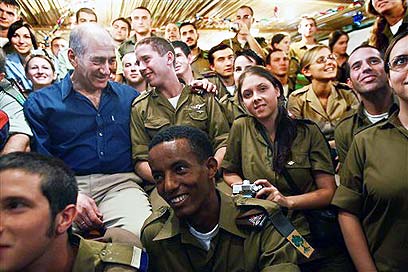 ראש הממשלה אהוד אולמרט, הרגיש היום (ב') מצויין בפגישה עם כחמישים חיילים עולים חדשים שבאו להתארח בסוכתו, במעונו הרשמי ברחוב בלפור בירושלים.