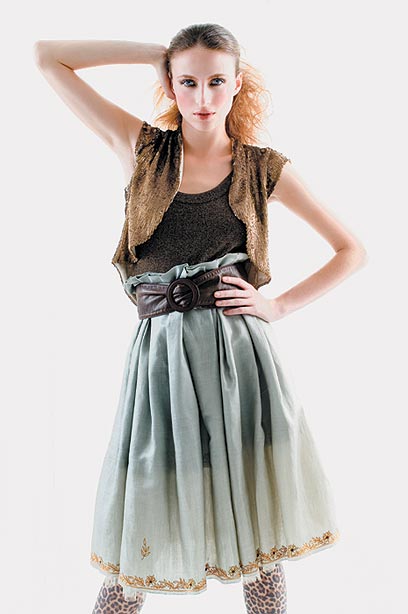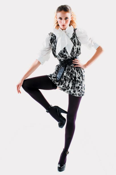 גופייה: אירית; שמלה: יוסף (דיזנגוף 213); חגורה: מנגו; עליונית: כתומנטה; גרביונים: טופ שופ