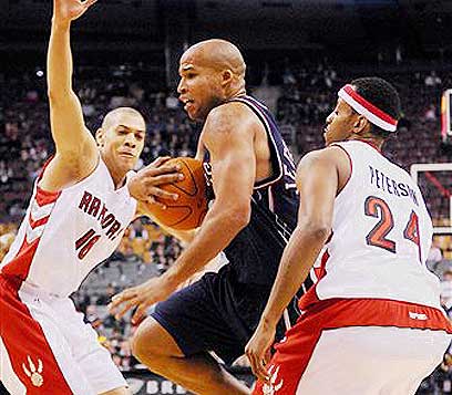 פארקר (משמאל) מול ריצ'רד ג'פרסון מהנטס. בליגה של הגדולים (איי.פי)
