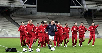 שחקני הפועל מתאמנים באיצטדיון האולימפי, אמש (צילום: 'ספורט טיימס')