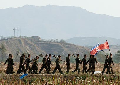 חיילים צפון קוריאנים סמוך לאתר הניסוי הגרעיני, היום (צילום: רויטרס)
