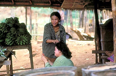 בין הכפר ובין מפלי קוואנג סי זרועים כמה בתי אוכל, ובין אחד לשני ניצבת כתמרור מחייך גברת אחת, לא צעירה. היא מציעה את מרכולתה לבאים - מאכל פאפאיה ירוקה.