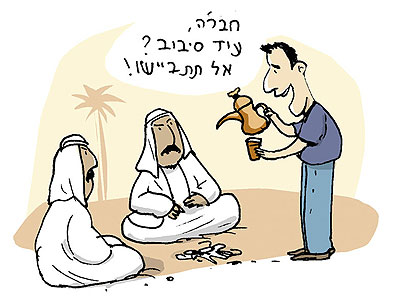 תביא אלכוהול. ערבים לא שותים אלכוהול. זאת אומרת הם כן, אבל בסתר, ואתה לא אמור לדעת מזה.