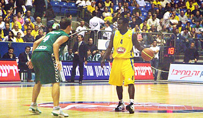 סאנצ'ס שומר על ביינום, הערב בהיכל נוקיה (צילום: יועד כהן)
