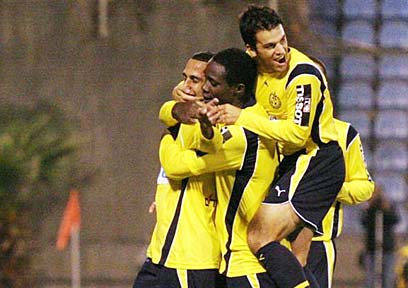 "נתנו פייט". שחקני הרצליה חוגגים את היתרון (צילום: אלי אלגרט)