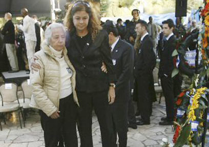 בתו של יצחק רבין ואחותו מניחות את הזר (צילום: רוייטרס)