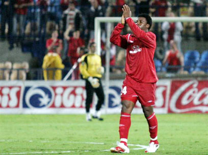 "צריך להביא את ההכרעה הביתה". אוגבונה אחרי השער (צילום: אלי אלגרט)