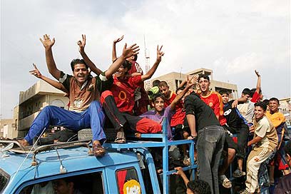 שיעים צוהלים על גזר הדין, בשכונת סאדר סיטי בבגדד (צילום: איי.פי)