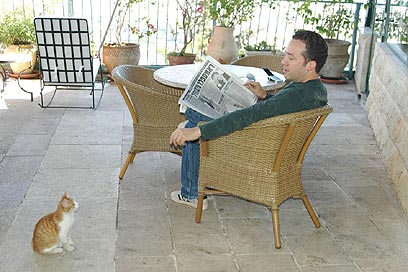 גיא פינס הגיע בלי רותי ההריונית, ומכיוון הוא מאמין באמונות תפלות במקרה הזה, הוא לא רצה לדבר על הצאצא המתבשל. הוא כן מאמין בלתפוס זולה על המרפסת פלוס חתול, וכאן אתם יכולים לראות אותו בעיצומה של פעילות דתית אדוקה.