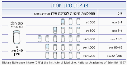 ילדים בני ארבע עד שמונה שנים נזקקים ל-800 מ"ג סידן ליום.