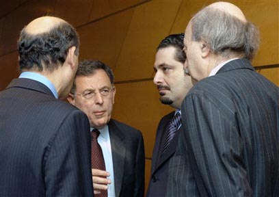 מתייעצים. וליד ג'ונבלאט, סעד אל-חרירי ופואד סניורה (צילום: איי.פי)