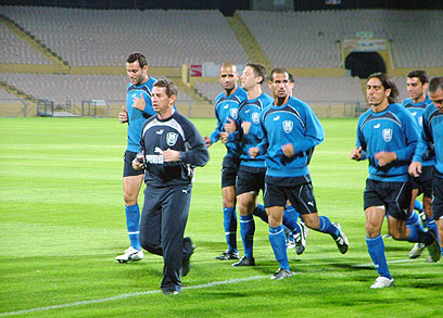 הנבחרת באימון הערב ביום ראשון (צילום: יונתן האורסטוק)