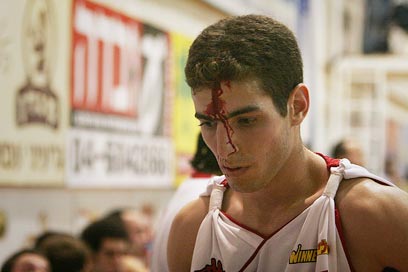 גוני יזרעאלי מול י-ם. גם הפציעה בראש לא עצרה אותו (צילום: חגי אהרון)