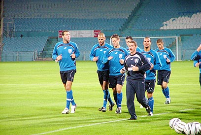 "הנוכחות של יוסי חשובה". הנבחרת מתחממת (צילום: יונתן האורסטוק)