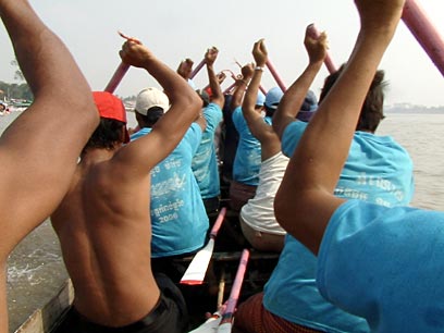 בנהר התחרות כבר בעיצומה. זוגות של סירות מתמודדות וכולן מקושטות. קו הסיום הוא מול הארמון. החותרים בתלבושות אחידות, למעט נותן הקצב שלבוש בקסדה מוזהבת או מנופף בשרביט מעוטר. היום הכול מותר והעיקר שהיבול יהיה טוב, הדגים יהיו גדולים ורבים והבודהא שלא יהיה קמצן ויחייך מעל נהר המקונג.