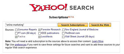 מחפשים מידע אבל לא בטוחים באיזה מאגר מקצועי הוא אכן נמצא? פתיחת מאגרי המידע המקצועיים גם לקהל הרחב הניעה את Yahoo ו-Google להציע שירות כולל של חיפוש מקבילי, בו זמנית במספר גדול של מאגרי מידע המאפשרים חיפוש וקבלת תקצירים חינם. משלמים רק כשרוצים לקרוא או להוריד מאמר. לדוגמה, Yahoo Search Subscription .