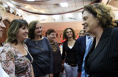 יולי תמיר בביקורה היום בשדרות (צילום: צפריר אביוב)