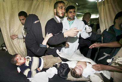 פינוי פצועים היום לאחר ירי הטיל של צה"ל (צילום: רויטרס)