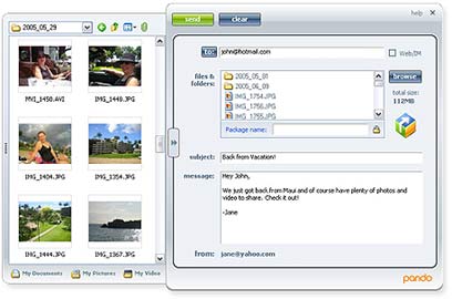 חברת Pando Networks הישראלית מציעה פתרון למשלוח קבצים מצורפים גדולים. מדובר בתוכנת שיתוף קבצים קטנה (כשלושה מגה בייט) הניתנת להורדה חינם ועם התקנתה מתווסף סמל לשורת המשימות של מערכת ההפעלה.