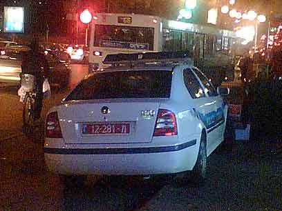 ניידת בתחנת אוטובוס בבני ברק (צילום: דניאל בק)