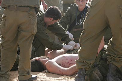 פינוי הפצועים בשטח (צילום: צפריר אביוב)