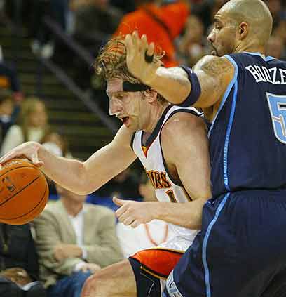 חוק מרפי. קרלוס בוזר לא מסתדר עם טרוי מרפי מהווריורס (צילום: איי פי)