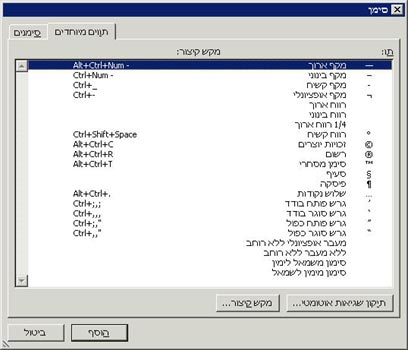 לסימנים שתשתמשו בהם פעמים רבות ניתן להגדיר קיצורי מקלדת, או להשתמש בקיצורים שהוגדרו מראש