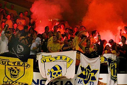 אוהדי מכבי תל אביב. ראו עוד תצוגת ענק של וויצ'יץ' (צילום: איי פי)