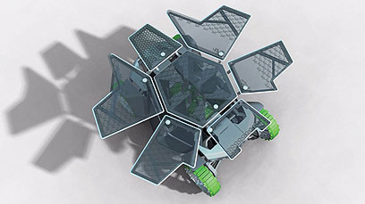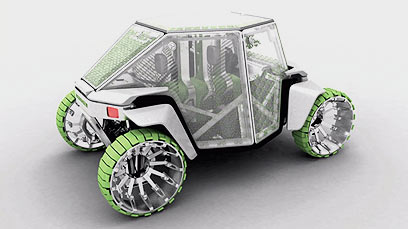 ההצעה הזוכה השנה, מבית מרכז העיצוב המתקדם של ג'נרל מוטורס בקליפורניה (שעיצב גם את זוכת שנה שעברה), הולכת צעד אחד קדימה. מכוניות לא מזהמות וניתנות למיחזור יש כבר בייצור סדרתי או ניסיוני. אז למה לא להציע משהו מיוחד: מכונית שקולטת פחמן דו-חמצני (תוצר לוואי של בעירת מנוע בנזין) ומעבדת אותו לחמצן טהור, שנפלט חזרה לאוויר. ה-O2 עושה זאת באמצעות "עלים" - משטחים פוטוטרופיים מתקפלים שיונקים אוויר מזוהם ופולטים חמצן. לדברי GM, כלי הרכב מבלים ממילא 95% מהזמן ברביצה חסרת מעש בשמש, אז למה לא לתרום משהו לסביבה? שאלה מצוינת, שנשמח לקבל עליה תשובה מ...יצרניות הרכב ו-GM בראשן.