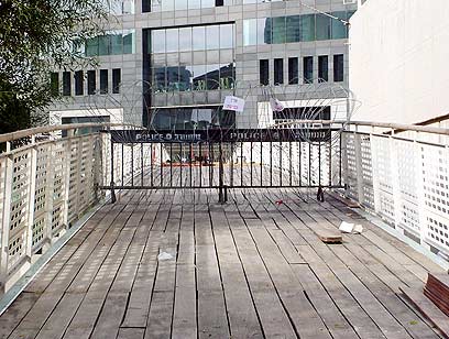 בהחלטה תמוהה נוספת חסמה המשטרה גם העלייה לגשר שעובר מעל חניון המעצרים ומחבר בין רחבת מוזיאון תל אביב ל"מגדל המוזיאון" שנבנה באזור. ככל הנראה, במשטרה חוששים שאחד העצורים יצליח לקפוץ לגובה של כשלושה מטרים ולברוח דרך הגשר, שנבנה לפני כשנה על ידי בעלי בניין "מגדל המוזיאון" לטובת העובדים בו, ועכשיו נסגר.