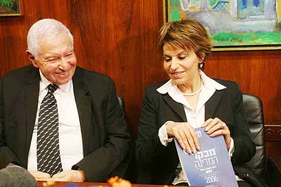 המבקר מגיש את הדו"ח לדליה איציק (צילום: גיל יוחנן)