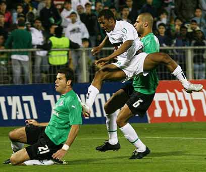 רודפים ורודפים. מכבי חיפה מנסה לעצור את יבואה (צילום: אלי אלגרט)