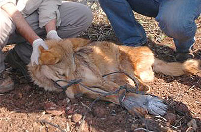 המשדר מוצמד לזאבה הרדומה (צילום: עומר שביט)